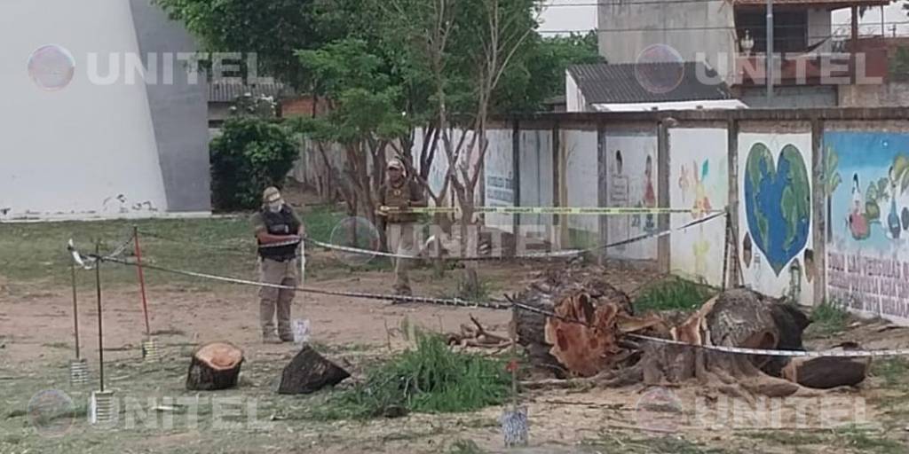 Según el relato al que tuvo acceso Unitel, unas personas estaban cortando un árbol del patio del centro educativo, mientras unos niños jugaban cerca y uno de ellos, fue aplastado por el tronco.