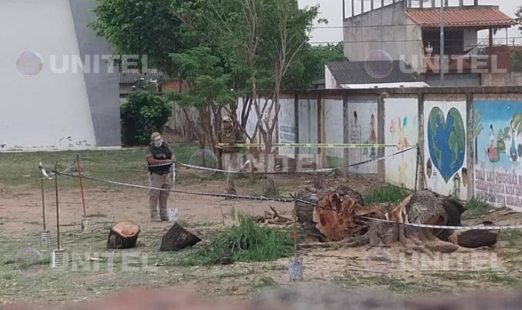 Un niño murió aplastado por el tronco de un árbol que era cortado en una unidad educativa del Plan 3.000, en la capital cruceña. Efectivos policiales llegaron al centro para iniciar las investigaciones de este caso.