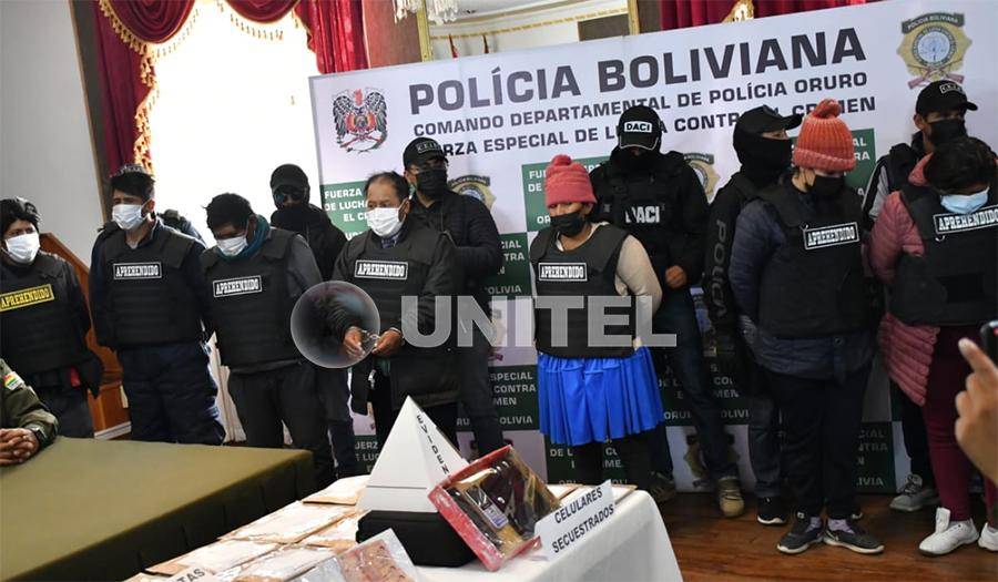 [Foto: Heidy Tarqui - UNITEL ] / La red fue aprehendida y presentada por las autoridades policiales de Oruro