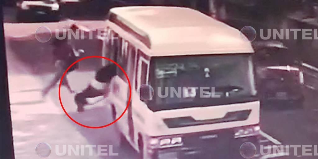 La joven pasajera, en medio de su consternación y desesperación, se asoma por la ventana en un intento de evitar que se lleven su celular, pero cae estrepitosamente contra asfalto, llegando a doblar su cuello por el impacto de la caída.