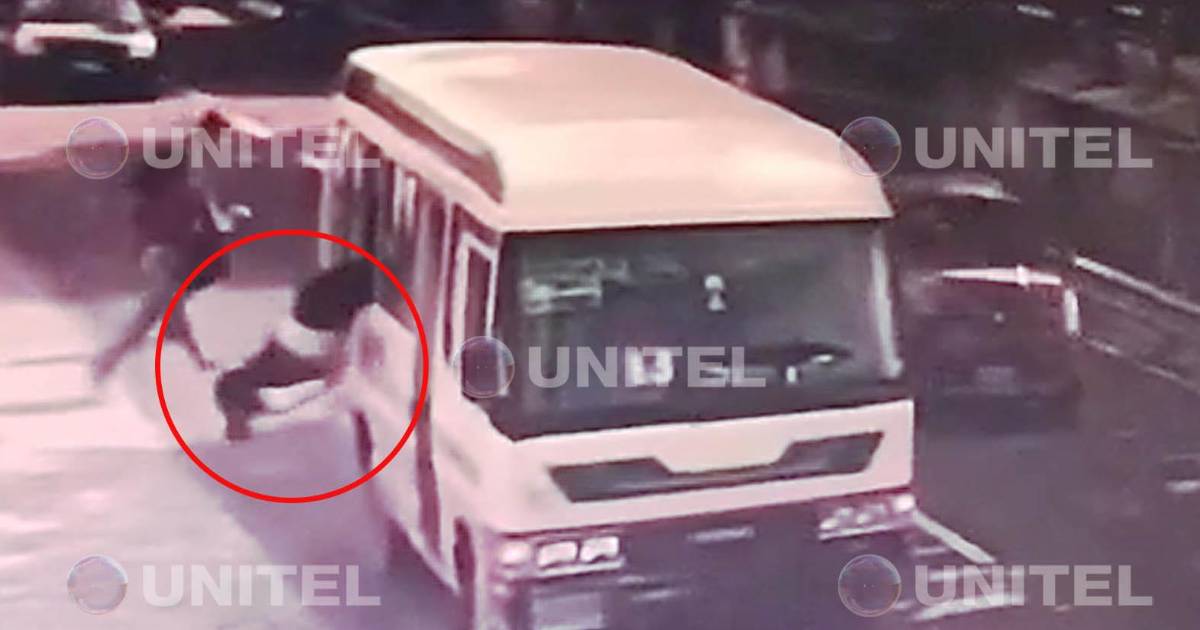 Pasajera de micro cae de cabeza tras sufrir el robo de su celular y tratar de recuperarlo