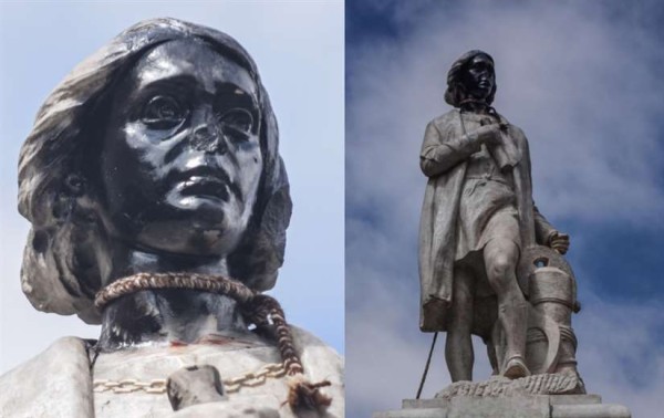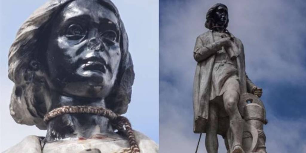 Este lunes un grupo de activistas se reunieron alrededor del monumento a Cristóbal Colón, en La Paz. Dos personas subieron hasta la altura de la cabeza y uno de ellos golpeó con un combo el rostro que le causó daños en la nariz, también pintaron de negro el rostro y la cabeza.