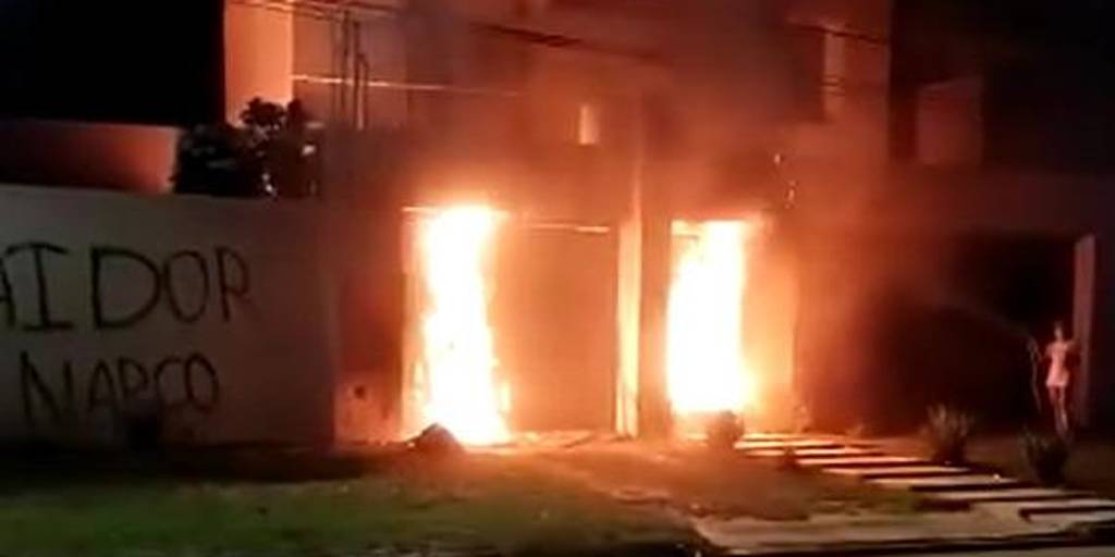 Un grupo de personas llegó la tarde de este miércoles hasta la hasta puertas de la vivienda de la autoridad y grafitearon el lugar y prendieron fuego en el ingreso al lugar.