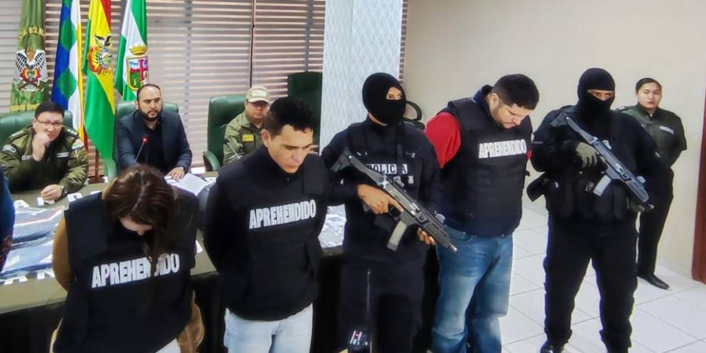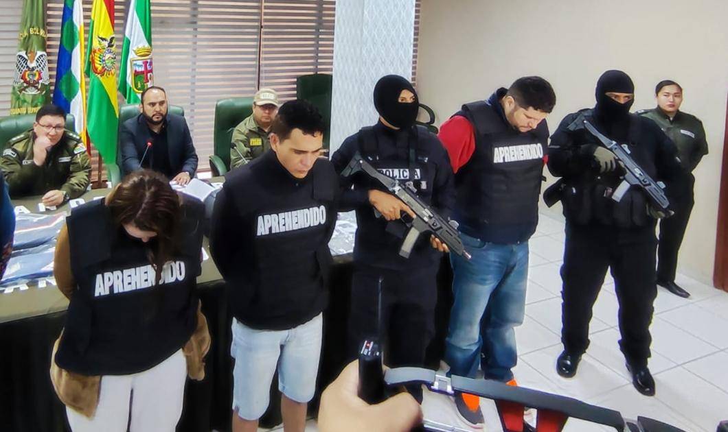 Luis Rogelio P.C, de nacionalidad brasileña, además de Luis Fernando C., Yuliana G., Marco Y.S., y Kevin R.Z, bolivianos, fueron aprehendidos en días pasados y presentados por las autoridades de Gobierno acusados de los atracos suscitados los primeros días de este mes en surtidores de la capital cruceña, donde emplearon violencia por disparos de arma de fuego.