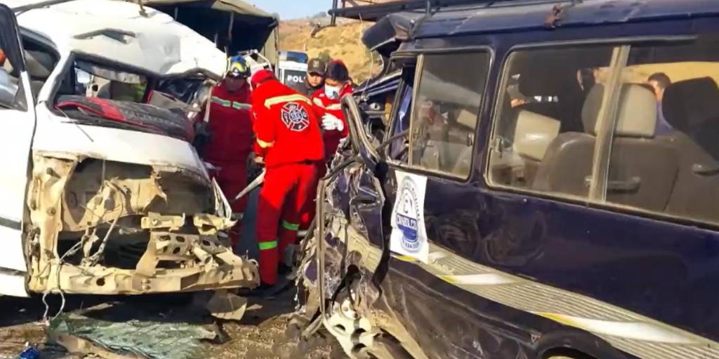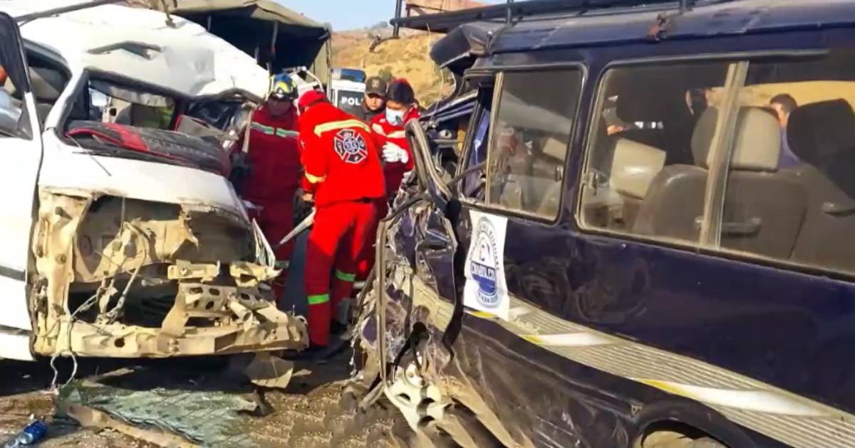 Una posible invasión de carril fue lo que provocó el choque frontal entre dos minibuses que dejó un saldo de al menos ocho heridos