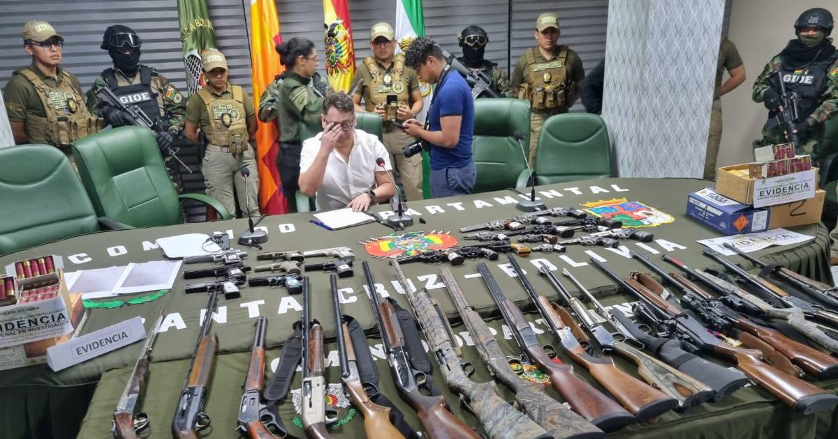 A pocas horas de iniciar el día 18 de la fuga de Sebastián Marset, la Policía y el Gobierno brindaron una conferencia de prensa en la que realizaron una evaluación de los operativos efectuados hasta este martes, destacándose que se ejecutaron 71 allanamientos y lo que más llamó la atención de esta jornada fue la cantidad de armas encontradas en un solo domicilio en Santa Cruz.