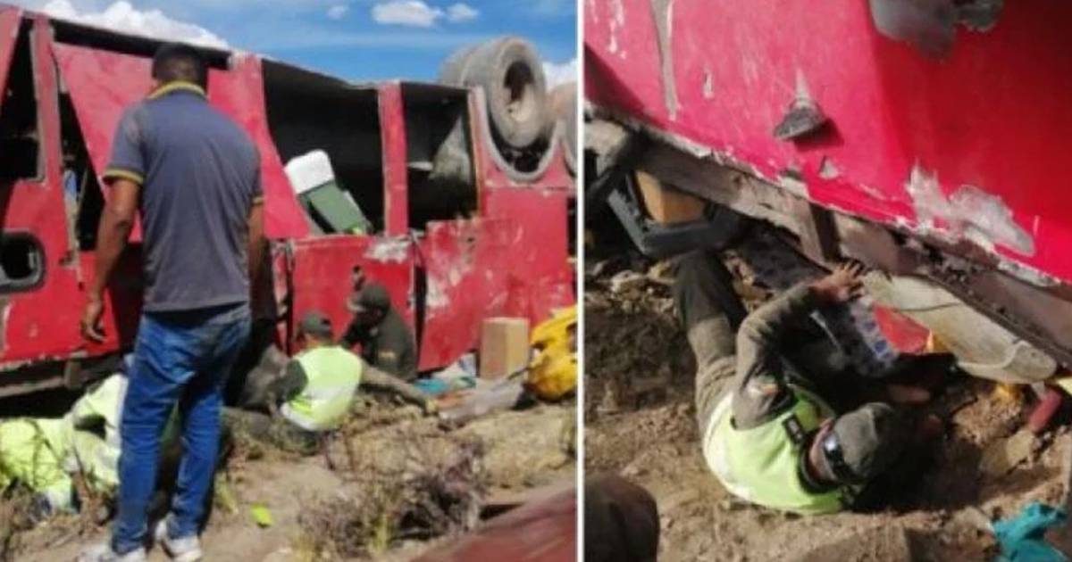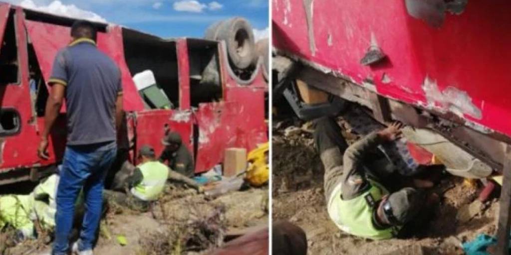 Seis muertos y al menos 13 heridos tras volcarse y caer a un barranco un bus que cubría ruta Tarija - Tupiza