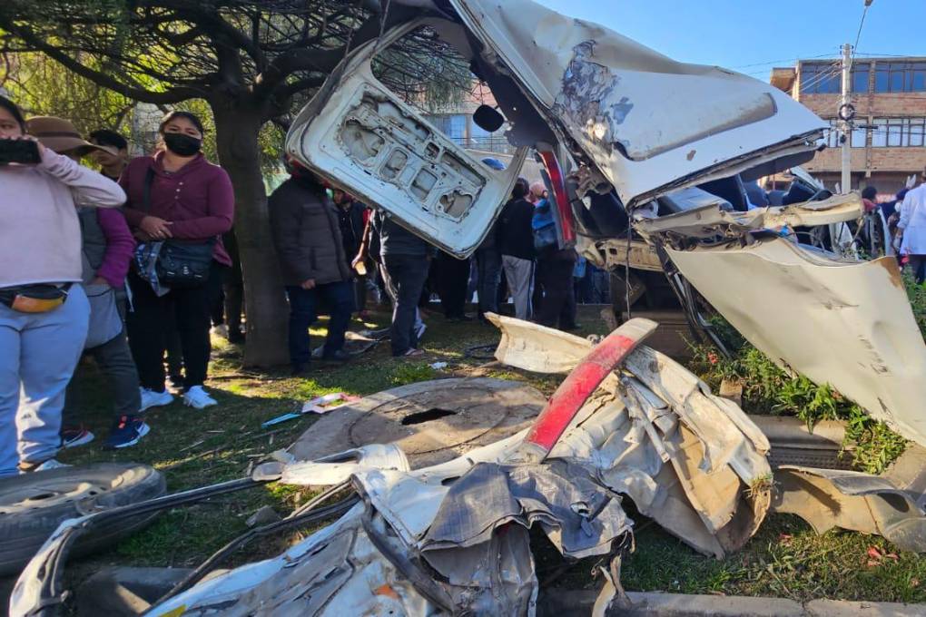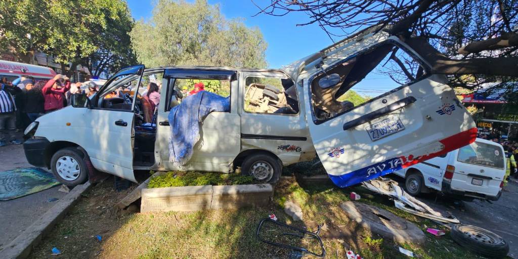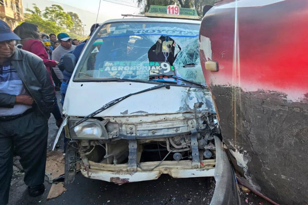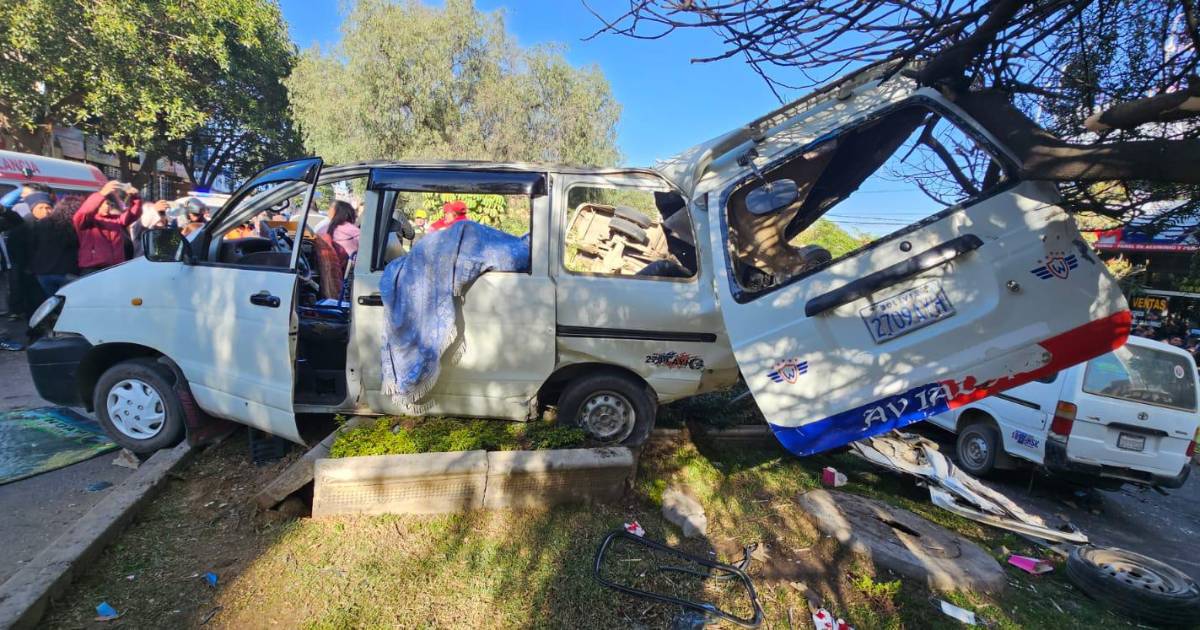 [Foto: Ariel Buitrago - UNITEL] / El trufi tipo Noah fue el más afectado