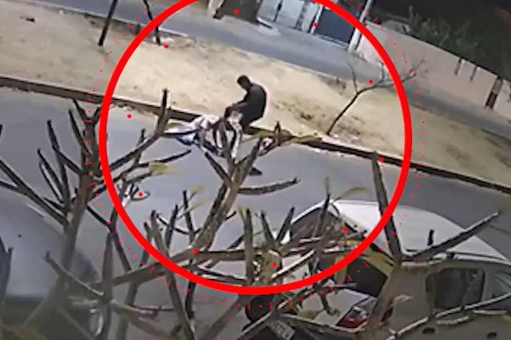Posteriormente, el sujeto se aleja y deja a la víctima tendida en el suelo totalmente inconsciente, todo el hecho quedó captado en cámaras de seguridad.