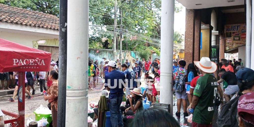 Los desmanes de delincuentes comenzaron temprano en la tarde. En la calle Ballivián, los carnavaleros denunciaron a UNITEL que había un grupo de personas vestida de negro y usando máscaras, lanzando globos y pintura a quienes se daban cita en el lugar y al mismo tiempo aprovechaban el caos para delinquir.
