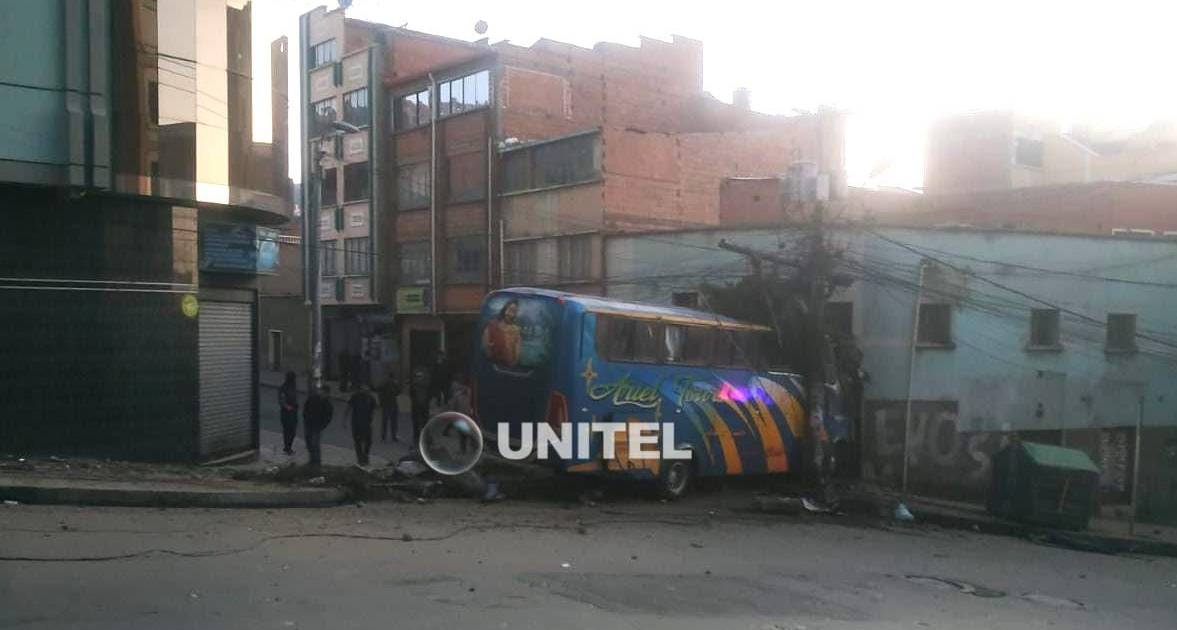 La madrugada de este miércoles un bus se estrelló contra un taxi y posteriormente contra dos viviendas de la avenida Kollasuyo, en el oeste de la ciudad de La Paz, una vía con una inclinación pronunciada. Se presume que presentó fallas en los frenos