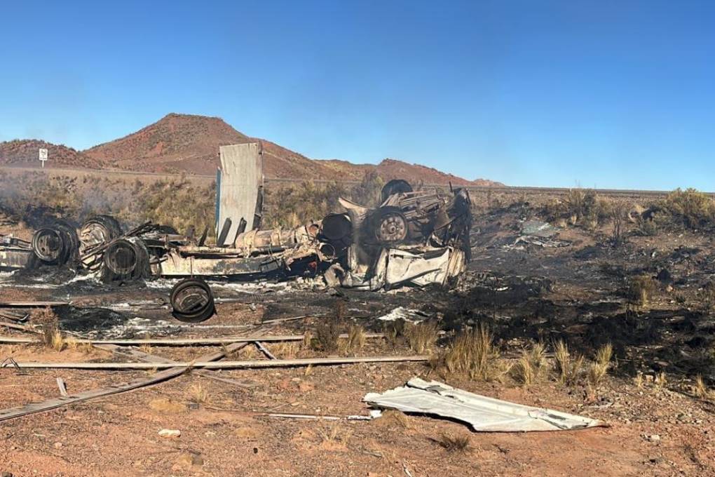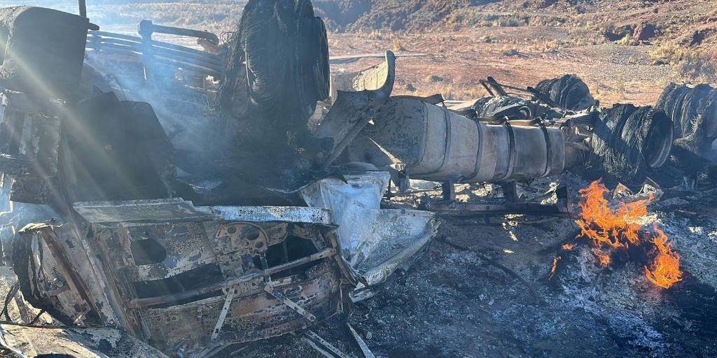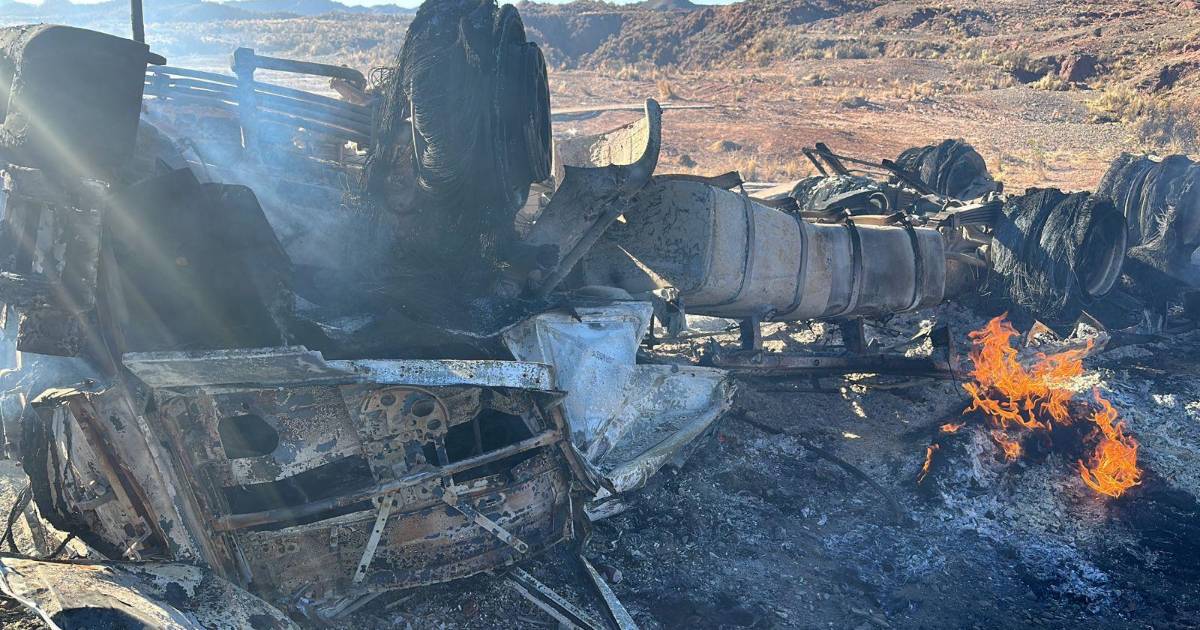 Tráiler queda calcinado tras volcarse en la carretera Patacamaya – Tambo Quemado