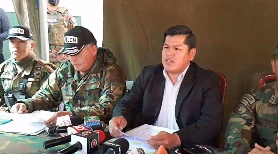 [Foto: Viceministerio de Sustancias Controladas] / Viceministro Jaime Mamani durante conferencia.