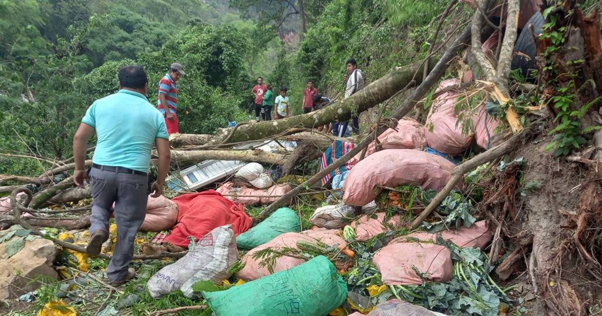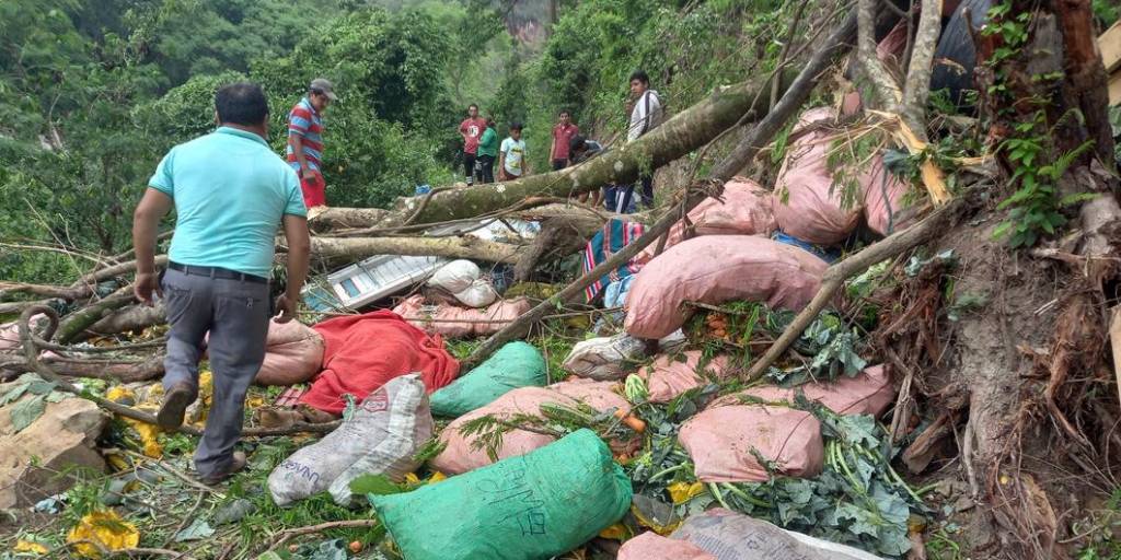 En las imágenes a las que tuvo acceso UNITEL se ve las bolsas de verduras esparcidas en el monte, y gente gritando ayuda para salvar a las personas heridas.