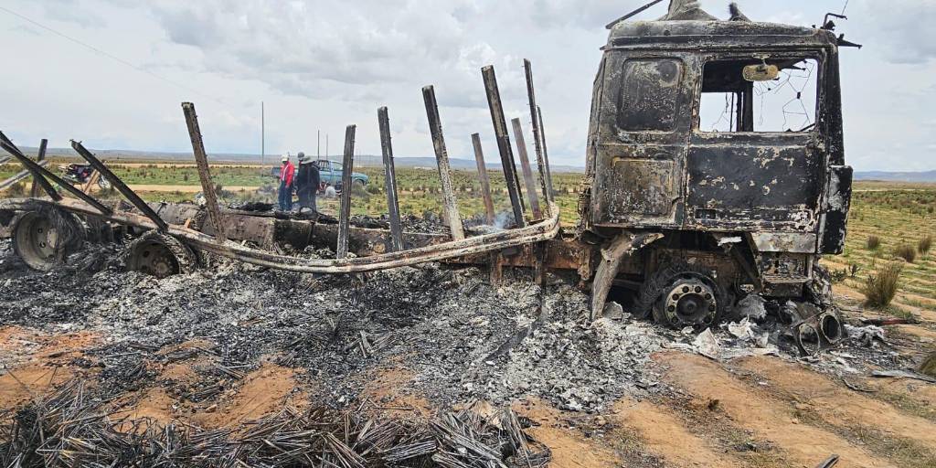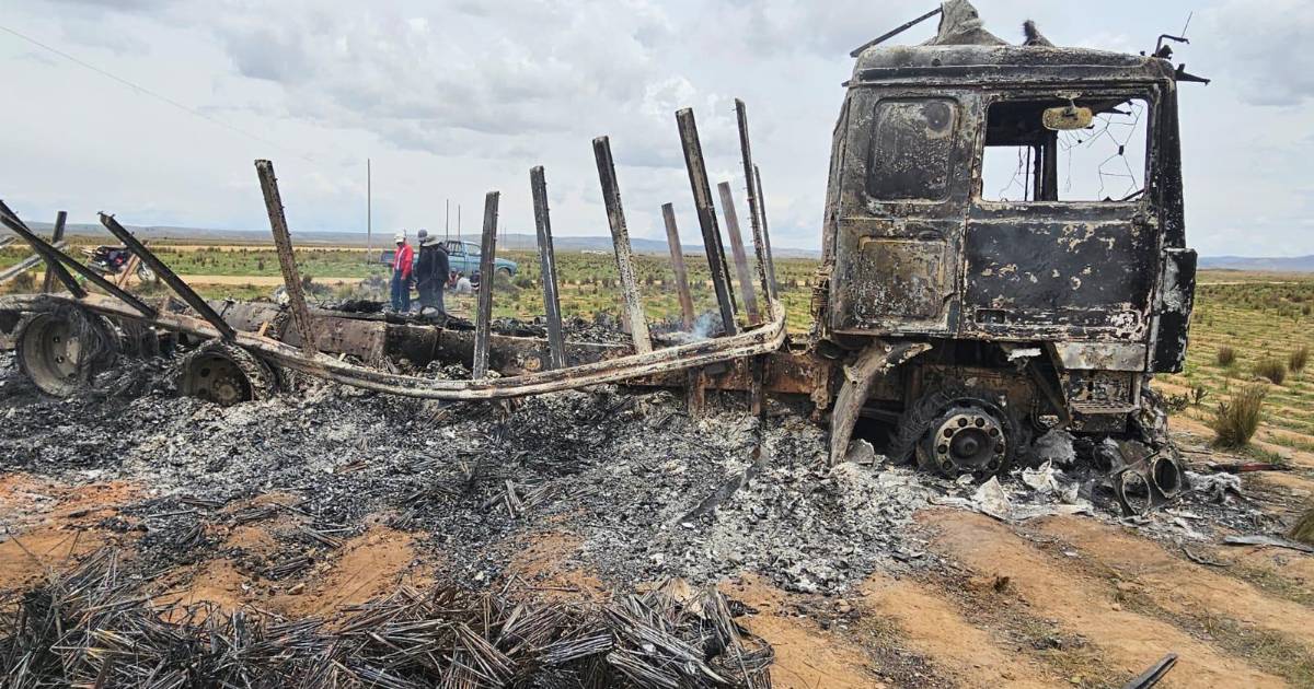 A las tres de la madrugada de este miércoles, en la comunidad Jalsuri de Viacha, un camión que presumiblemente transportaba contrabando fue interceptado por una patrulla militar. El motorizado de alto tonelaje terminó quemado.