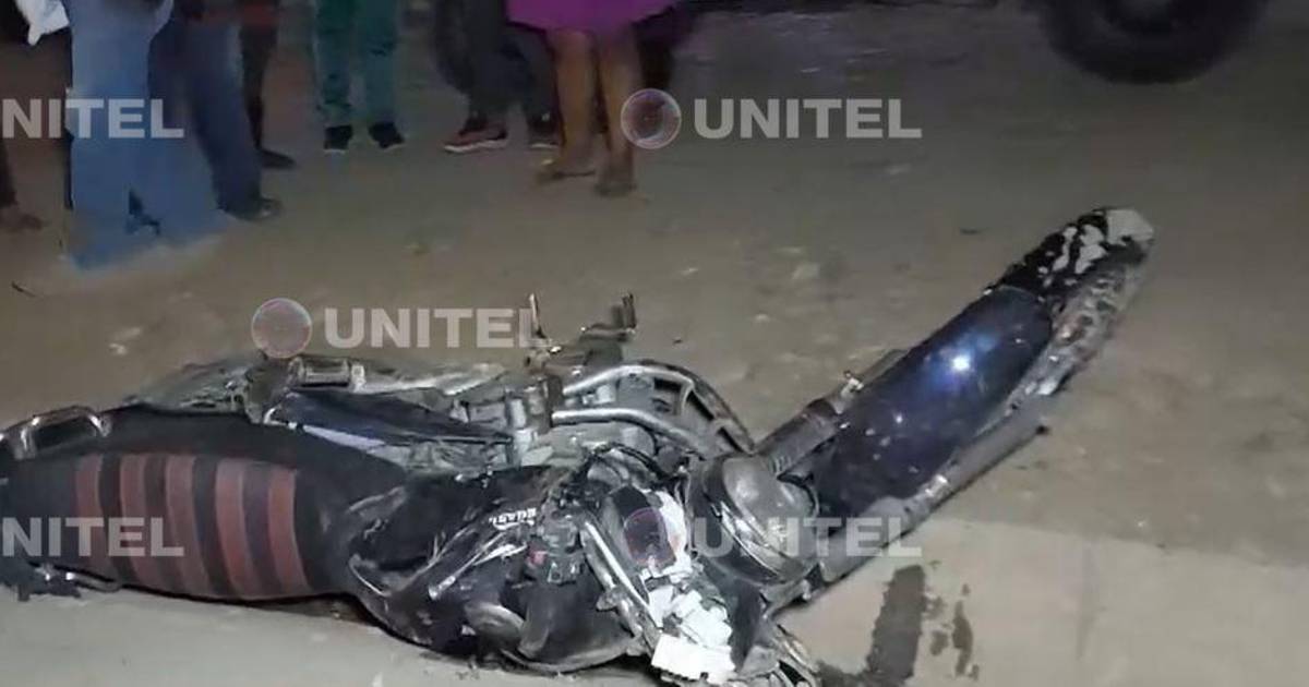 [UNITEL] / La moto quedó destrozada a un lado de la vía.