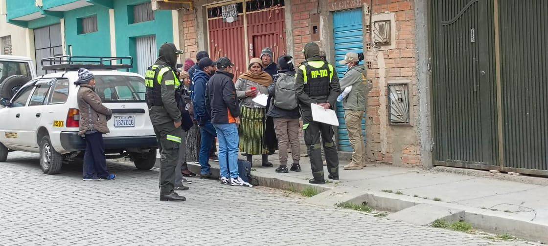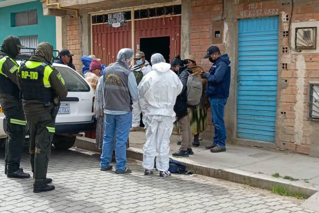 Agentes y peritos de la Felcv y la Felcc ingresaron a la vivienda para realizar el levantamiento de los cuerpos y colectar indicios que ayuden a resolver este caso.