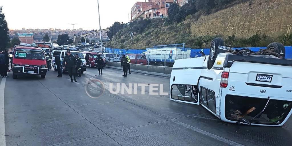Desde la Unidad Operativa de Tránsito de La Paz, reportan que uno de los accidentes suscitados en la autopista La Paz – El Alto, fue por un alto exceso de velocidad y por imprudencia del conductor. Este hecho sucedió la tarde del miércoles a la altura de la zona de Munaypata.