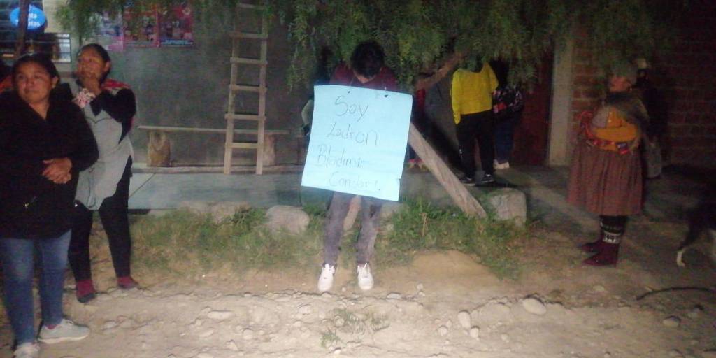 Ante una ola de robos en el sector, los vecinos enardecidos, buscaron hacer justicia con manos propia y procedieron a golpear, además de atar al antisocial con sogas a un árbol, posteriormente le colgaron un letrero con su nombre y que describía: “Soy un ladrón”.