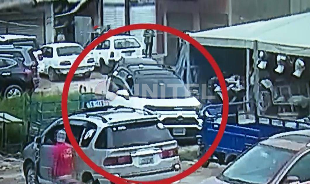 En las cámaras de vigilancia del mercado se aprecia el momento que el conductor, a bordo de una vagoneta blanca, ingresa al parqueo, baja del motorizado y trata de huir del lugar, cuando es perseguido por otra persona.