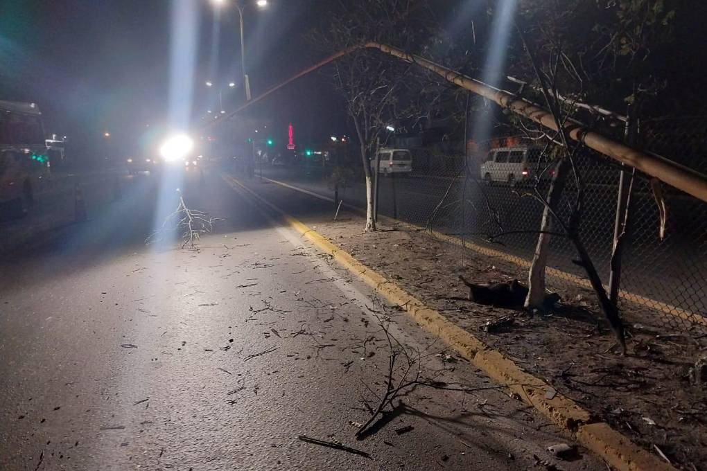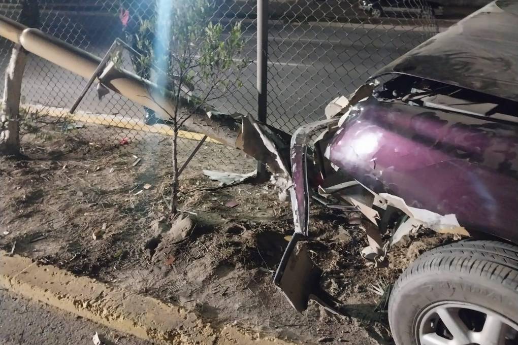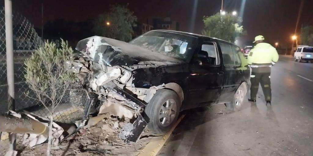 Un vehículo particular llegó a impactar contra la malla que divide ambas vías y posteriormente contra un poste de alumbrado público, provocando incluso, que este llegue a caerse.
