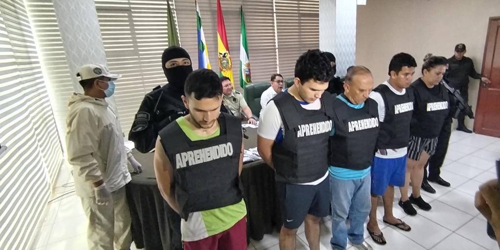 En la conferencia de prensa la Policía también presentó a cinco personas acusadas de haber brindado cobijo a André Costa Loja, en el Beni.