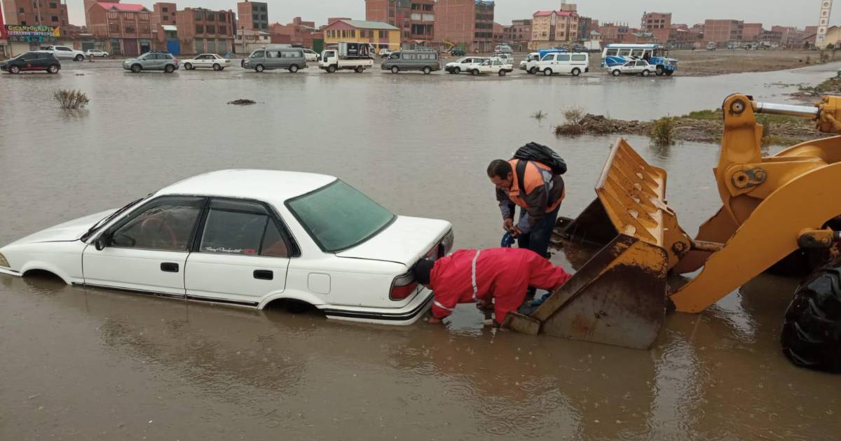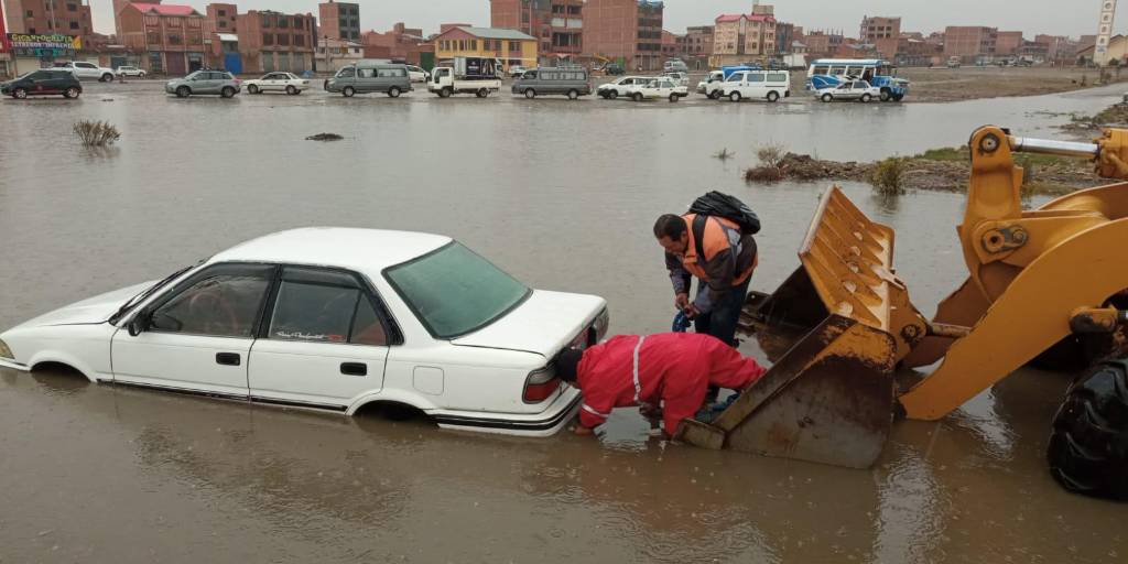 Un tractor tuvo que ser usado para ayudar a sacar del agua al taxi que quedó atrapado en la zona de El Alto