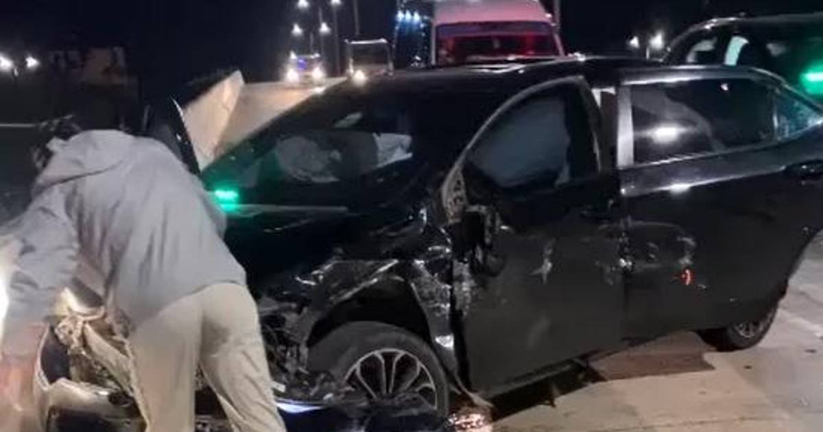 Un vehículo de color negro llegó a impactar contra uno de los laterales del viaducto, provocando serios daños materiales.