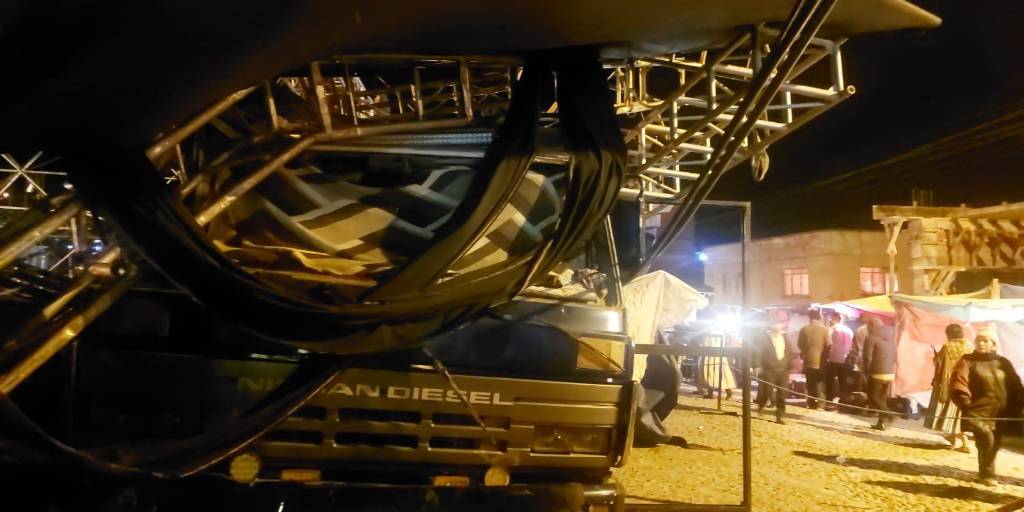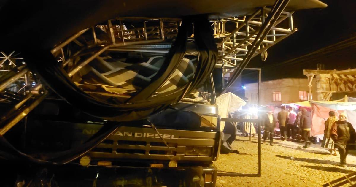El escenario de una fiesta patronal se desplomó y dejó heridos. El hecho se registró en la zona Alto Irpavi, en la ciudad de La Paz. Una persona que transitaba por el lugar registró en un video el momento exacto del incidente.
