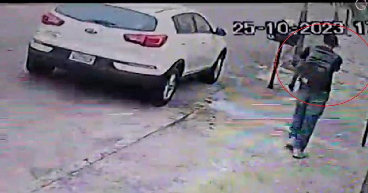 En las imágenes se observa cómo el delincuente estuvo merodeando por varios minutos en los alrededores del vehículo donde estaba el celular y el dinero. Después de unos segundos retorna para violentar una de las ventanas del costado derecho y así poder sustraer una billetera y un celular que había en el interior.