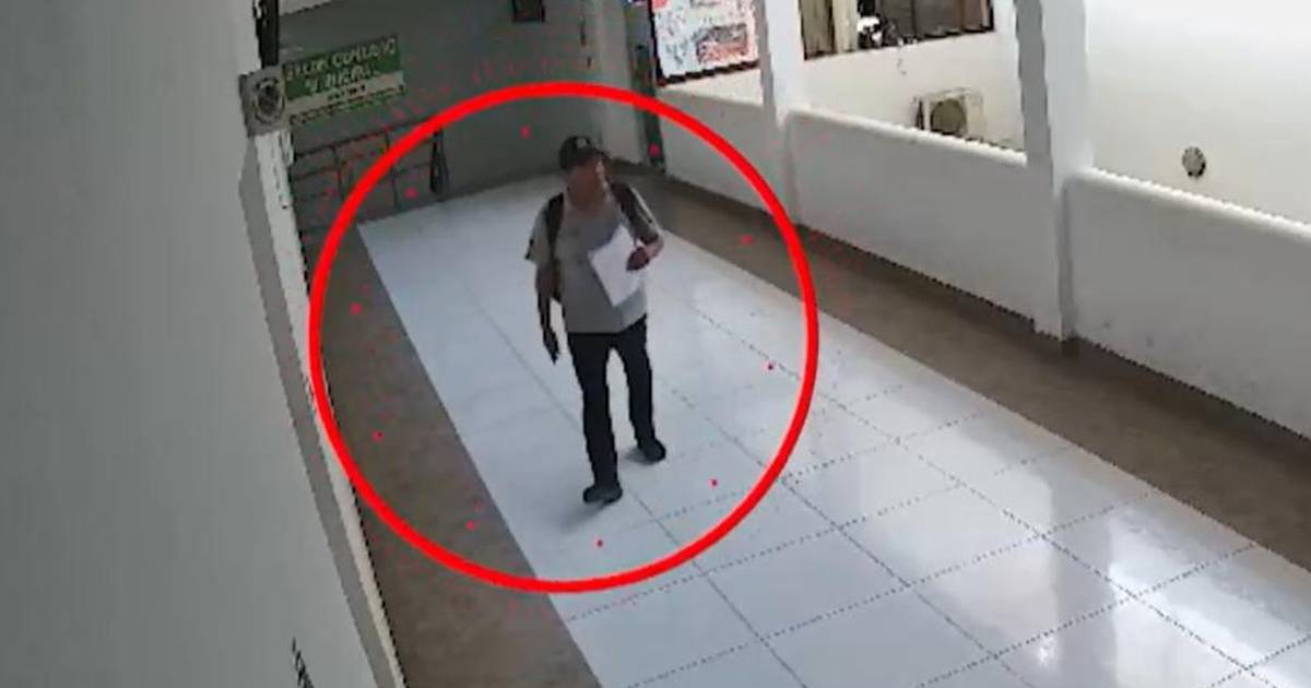 El sujeto aprovechó la ausencia de los funcionarios en su hora de almuerzo, donde ingresó y ocultó entre sus papeles la laptop para después salir como si nada