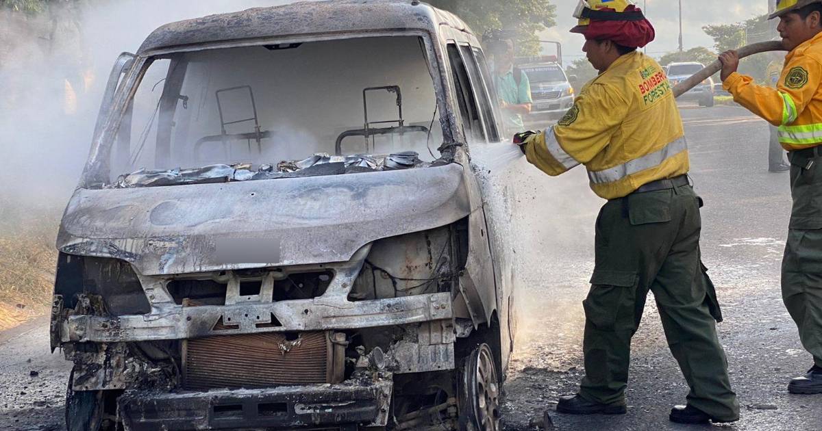 El vehículo prácticamente reducido a chatarra quedó en la doble vía a La Guardia. Creen que el sistema eléctrico sufrió un sobrecalentamiento