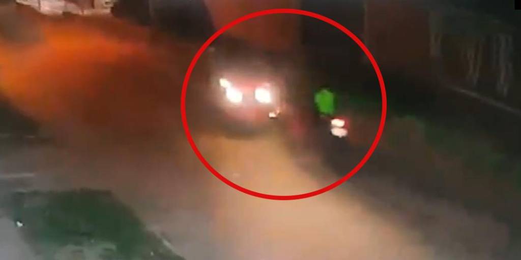 Las imágenes muestran cómo el vehículo de tres ruedas prácticamente invade el carril provocando el choque frontal contra la moto.