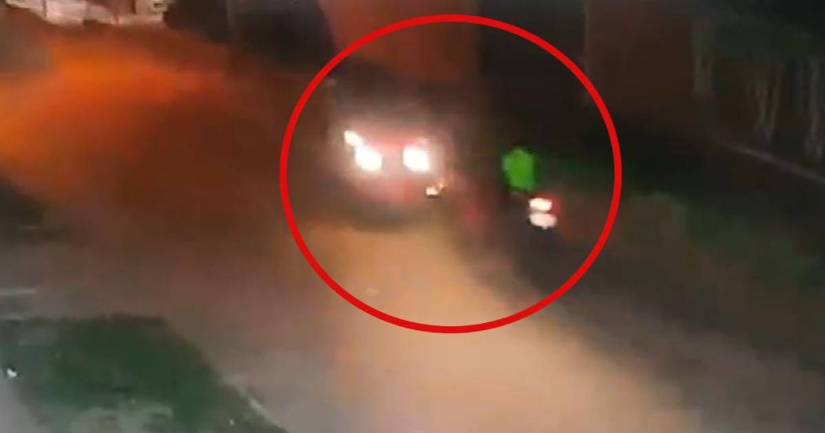 Cámaras de seguridad grabaron un aparatoso accidente. Una motocicleta es impactada de frente por un vehículo tipo ‘Torito’, el hecho se registró en la zona de Los Lotes la noche de este pasado sábado, en la ciudad de Santa Cruz.