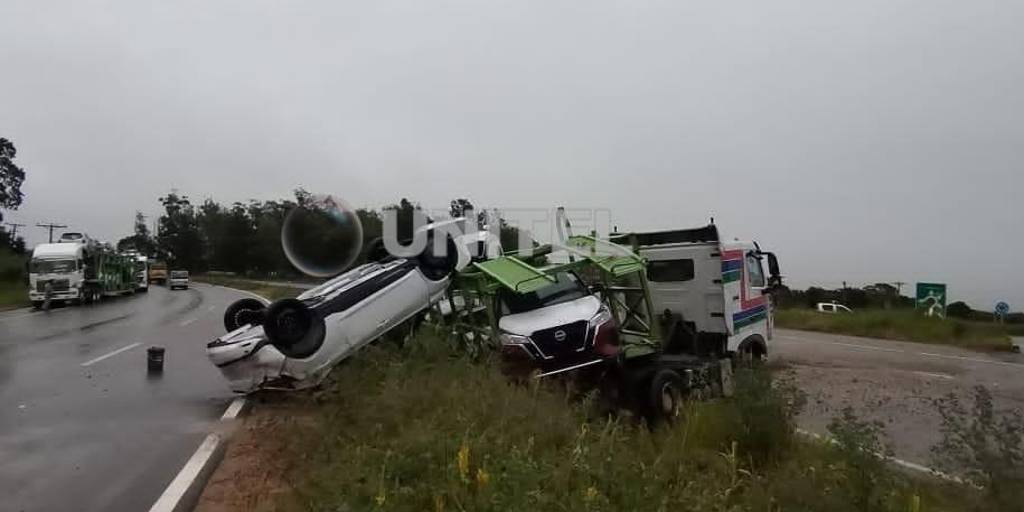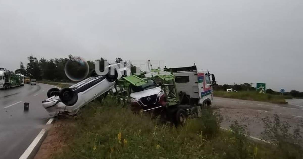 Los vehículos transportados eran nuevos y uno de ellos quedó volcado, con los vidrios rotos. Los restantes también sufrieron daños.