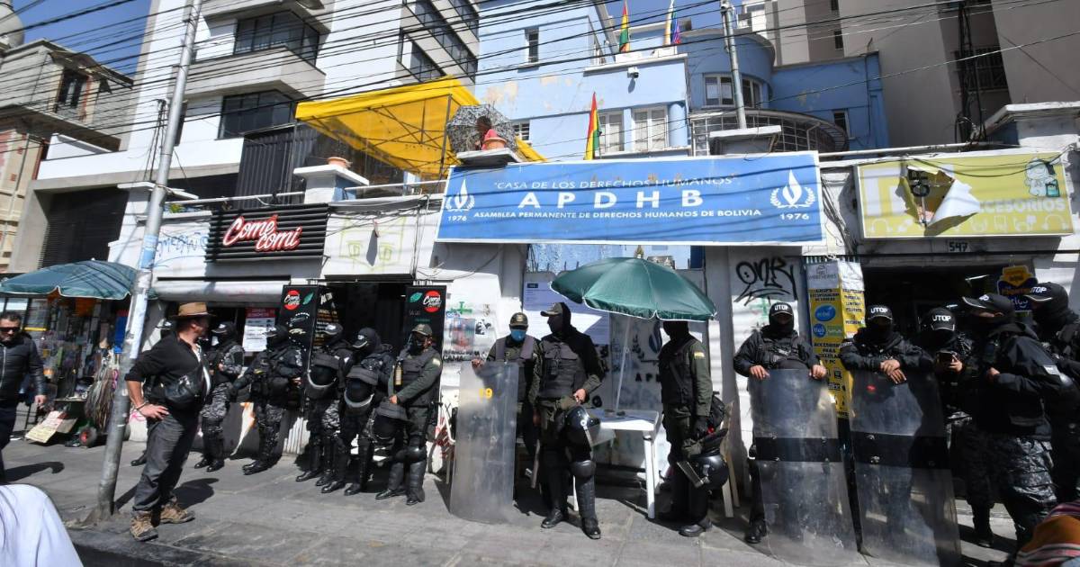 Tras cumplirse un día de la vigilia de Amparo Carvajal en la terraza de la Asamblea Permanente de Derechos Humanos de Bolivia (Apdhb), los activistas sociales que se apostaron en puertas de estas instalaciones decidieron permanecer en este sector y apoyar esta determinación.