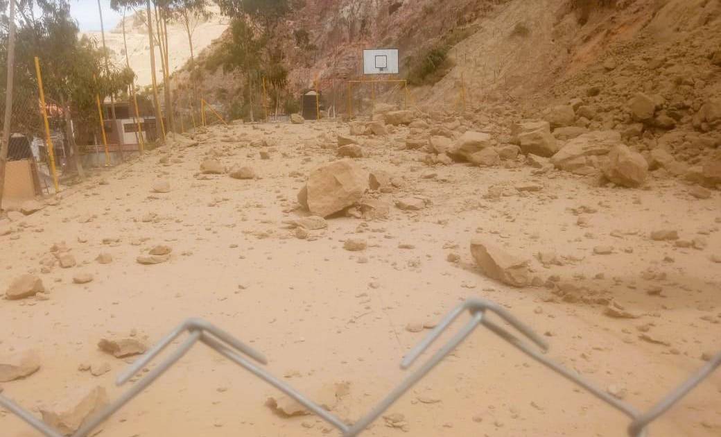 La Alcaldía de La Paz informó la tarde de este viernes que la caída del talud en Aranjuez, en el sur de La Paz, no afectó a personas ni casas del sector. El material cayó sobre parte de un campo deportivo y el patio de dos casas.