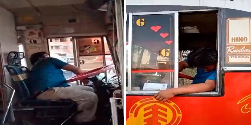 Transeúntes y vecinos de la zona sur de Cochabamba, captaron a un chofer completamente dormido a bordo de un micro de transporte público.