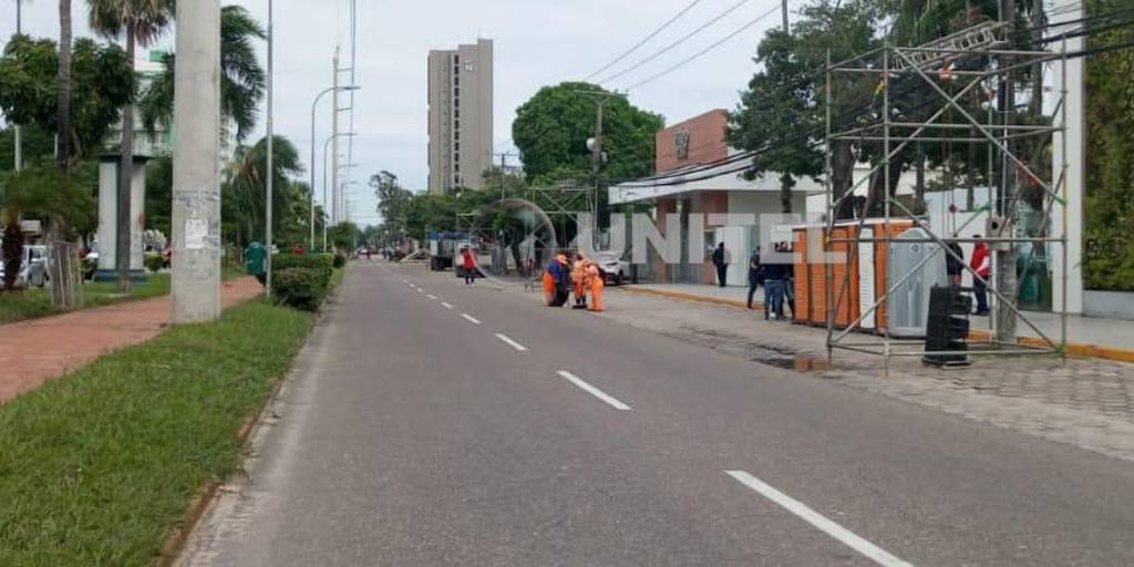En el lugar hay trabajadores que ya comenzaron a armar las tarimas de las comparsas, que este año se ubican en la vereda de la Fexpocruz. Además, en el lugar también han instalado baños públicos.