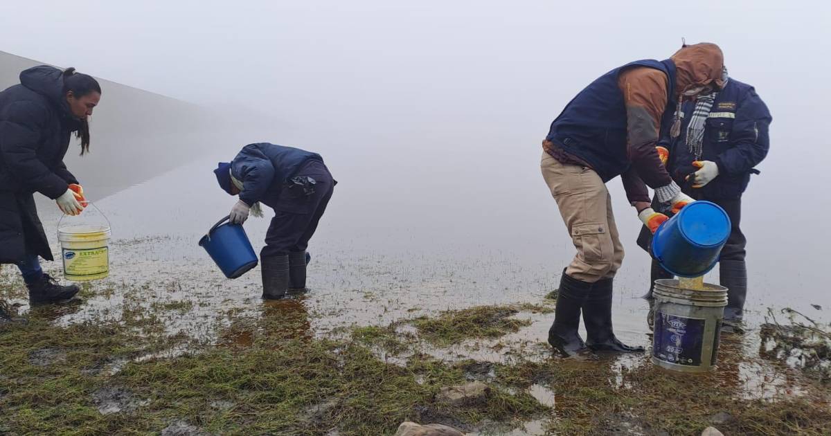 MIRA AQUÍ: Con palas, vasos y baldes, comunarios intentan sacar el aceite que cayó sobre la laguna Corani