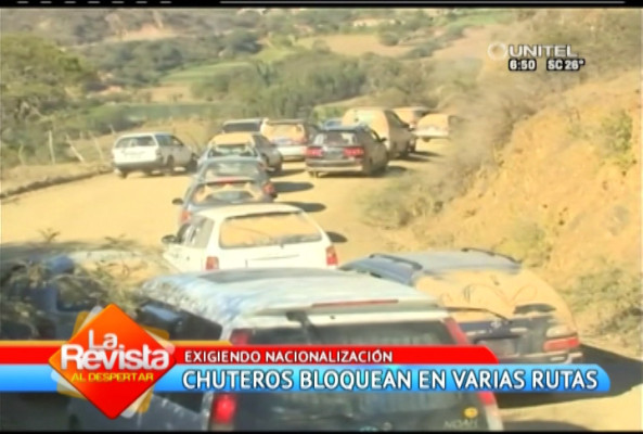 Gómez aduce que las afectadas son 50 mil familias y señaló que la medida tiene una duración de24 horas. Advirtió que si el Gobierno no da lugar a la nacionalización de ‘chutos’, el 15 de septiembre harán bloqueos indefinidos.