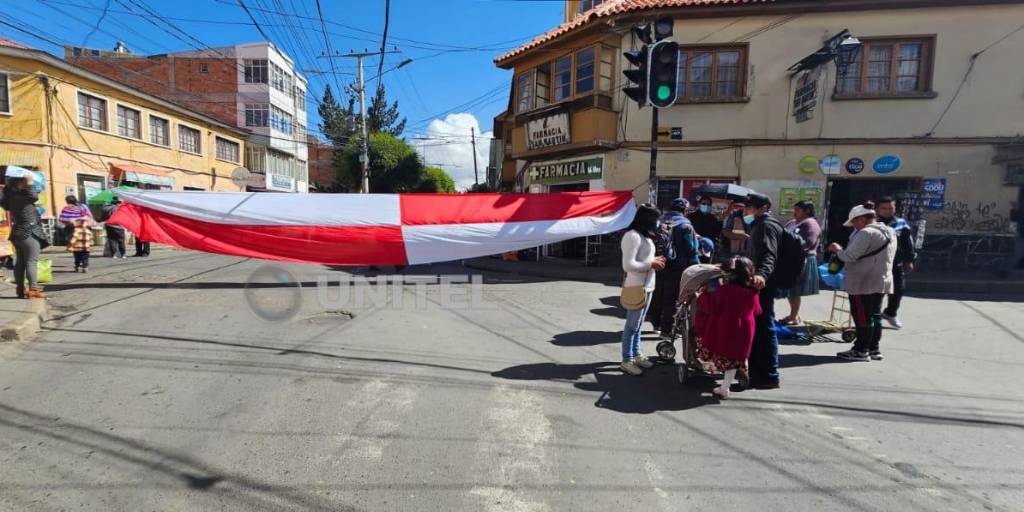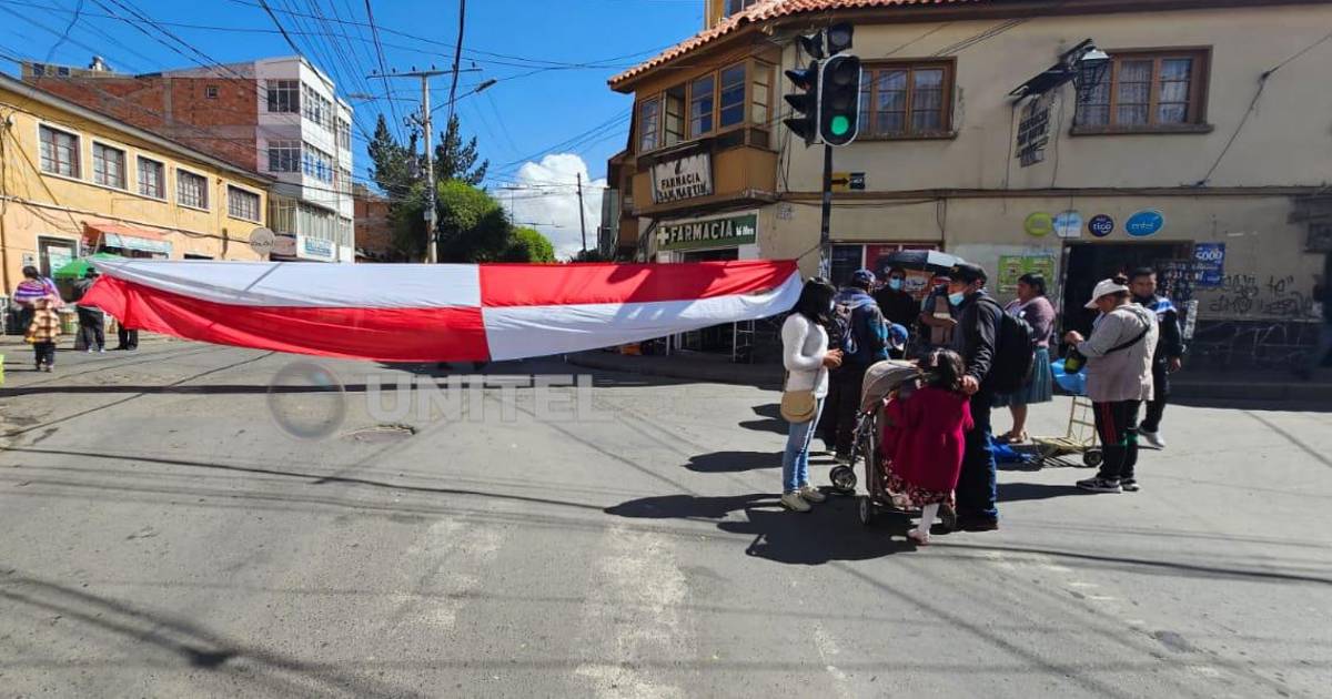 Banderas de Potosí y Bolivia se extendieron en las calles del centro de la ciudad de Potosí. Los sectores que respaldan al Comité Cívico Potosinista (Comcipo) activaron la mañana de este lunes varios puntos de bloqueo para exigir la aprobación de la ley de evaporíticos o ley del litio.