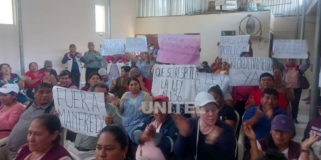 Vendedores del nuevo mercado La Ramada, en Santa Cruz, llegaron hasta la zona de la exterminal, donde están las oficinas de la Secretaría Municipal de Seguridad Ciudadana para exigir que se retiren a los ambulantes de las calles.