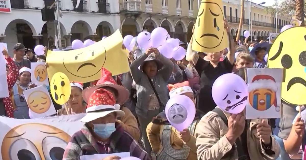 Un grupo de comerciantes llegó hasta la plaza principal 14 de Septiembre de Cochabamba, para realizar una protesta en rechazo al anuncio del traslado de la Feria Navideña.