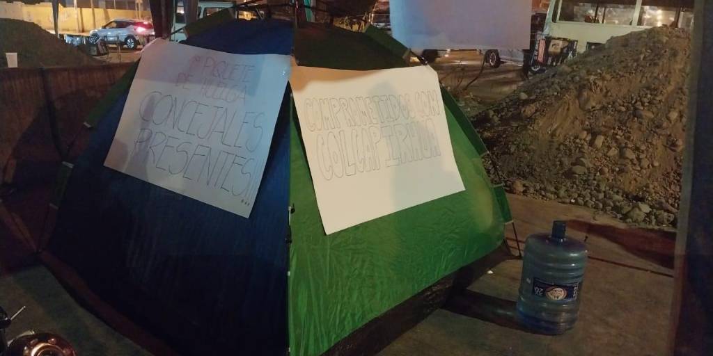 Las autoridades instalaron una carpa en el lugar para cumplir la medida de presión en apoyo a Colcapirhua. Anunciaron que no se moverán del lugar hasta que sean escuchados y se consiga una solución al conflicto.