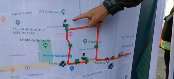 Los vehículos deberán ingresar por la avenida Blanco Galindo hasta la esquina de la avenida Busch, posteriormente doblar en la calle Teófilo Vargas, desviar en la avenida Rosendi y retornar hasta la avenida Blanco Galindo.
