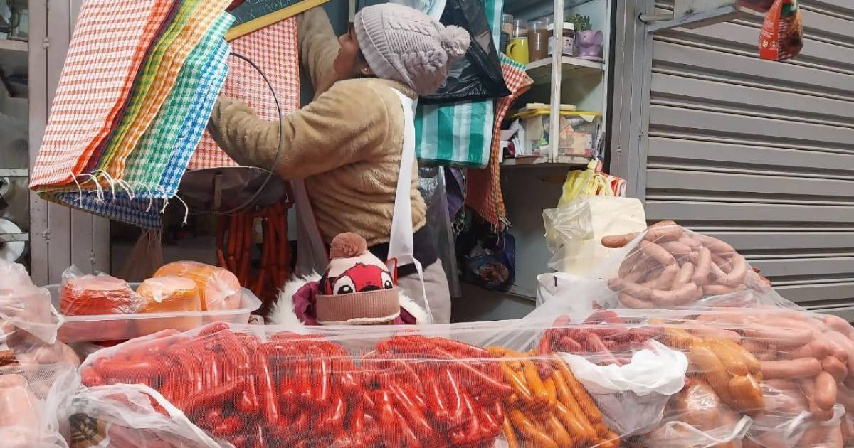 [Foto: Marcelo Beltrán - UNITEL] / Venta de embutidos en el mercado La Pampa - Cochabamba