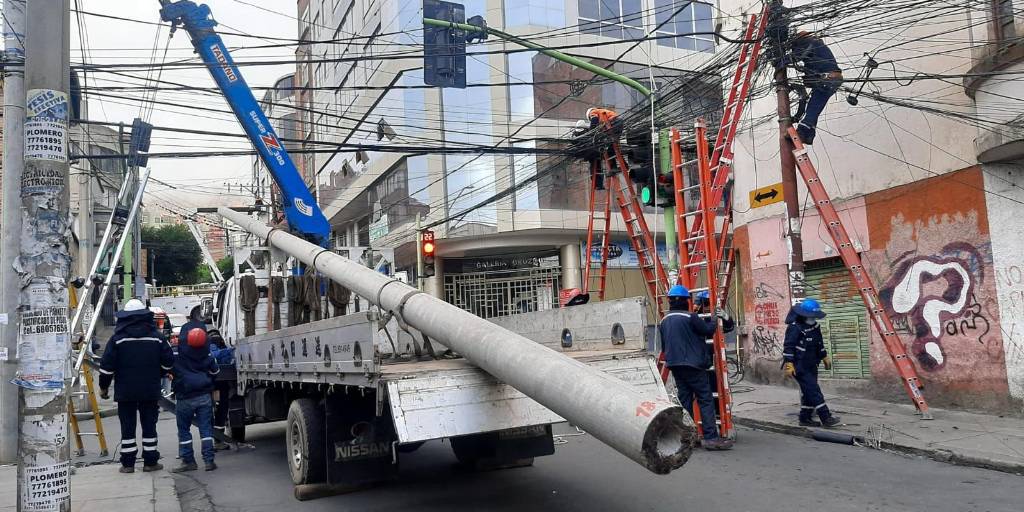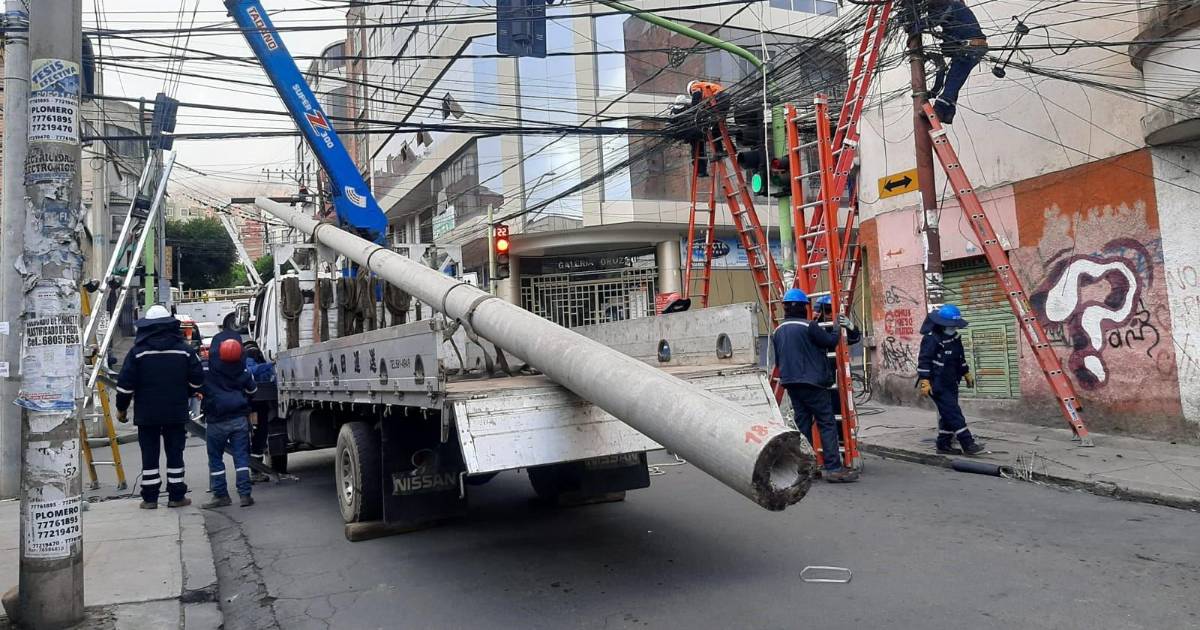“Es un mantenimiento preventivo de los postes de luz que tienen bastantes años y que la empresa DeLaPaz previamente coordinó con diferentes instancias para que se pueda hacer el cambio y la reposición”, explicó Saavedra.