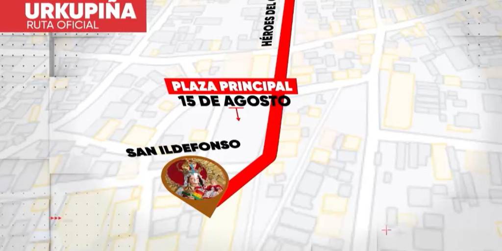 Posteriormente deben llegar hasta inmediaciones del estadio municipal de Quillacollo y seguir su paso sobre la avenida Blanco Galindo llegando hasta la esquina de la plaza Bolívar y girar a la avenida Suárez Miranda hasta la calle Luis Uria y retornar por la avenida Waldo Ballivián siguiendo su recorrido hasta la plaza 15 de Agosto para finalmente llegar al templo de San Ildefonso.
