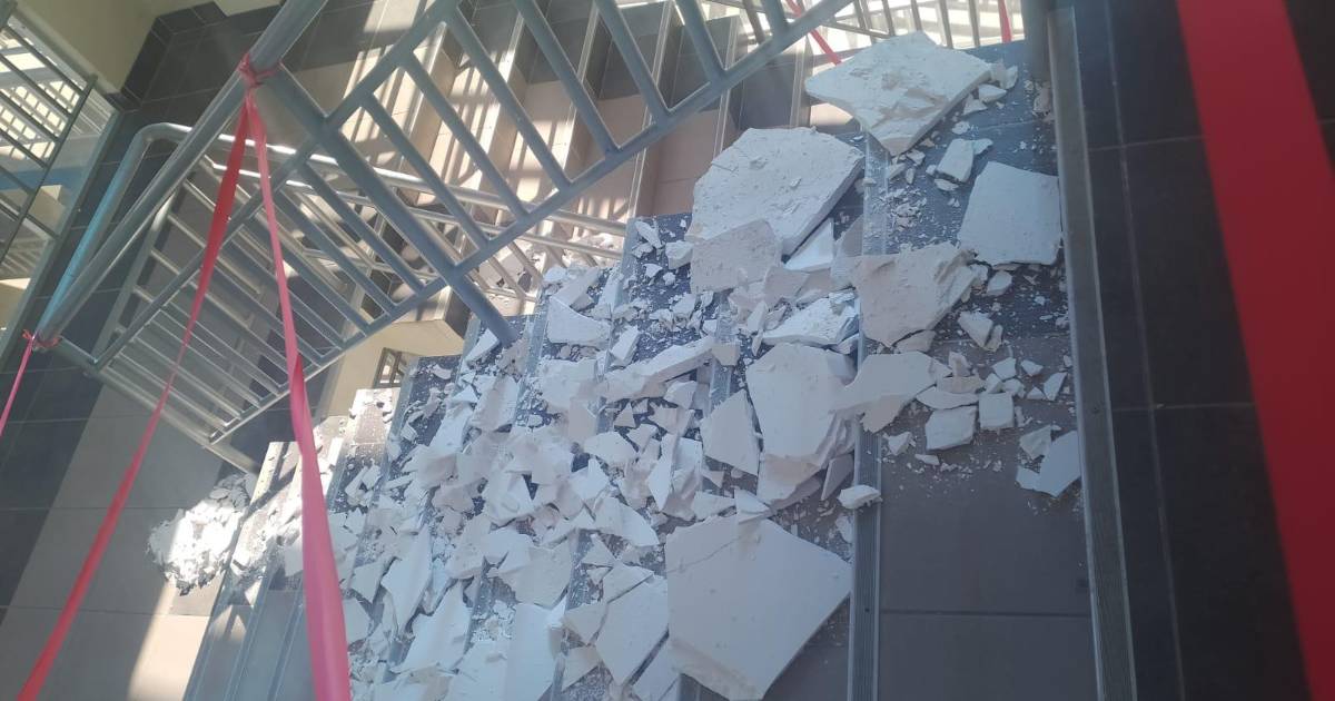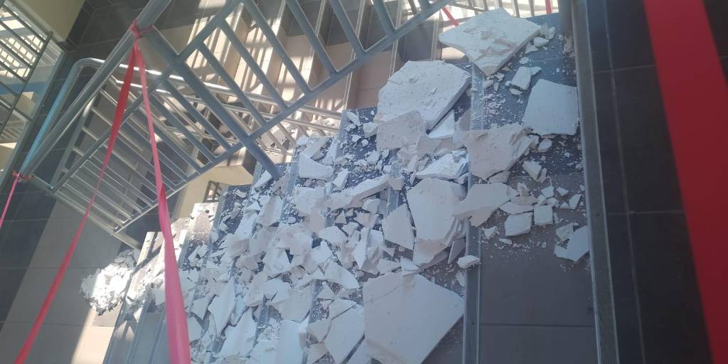 Los estudiantes del colegio fiscal Juan Capriles de la ciudad de El Alto tuvieron que pasar momentos de susto a causa del desplome del tumbado del techo principal de esta unidad educativa.